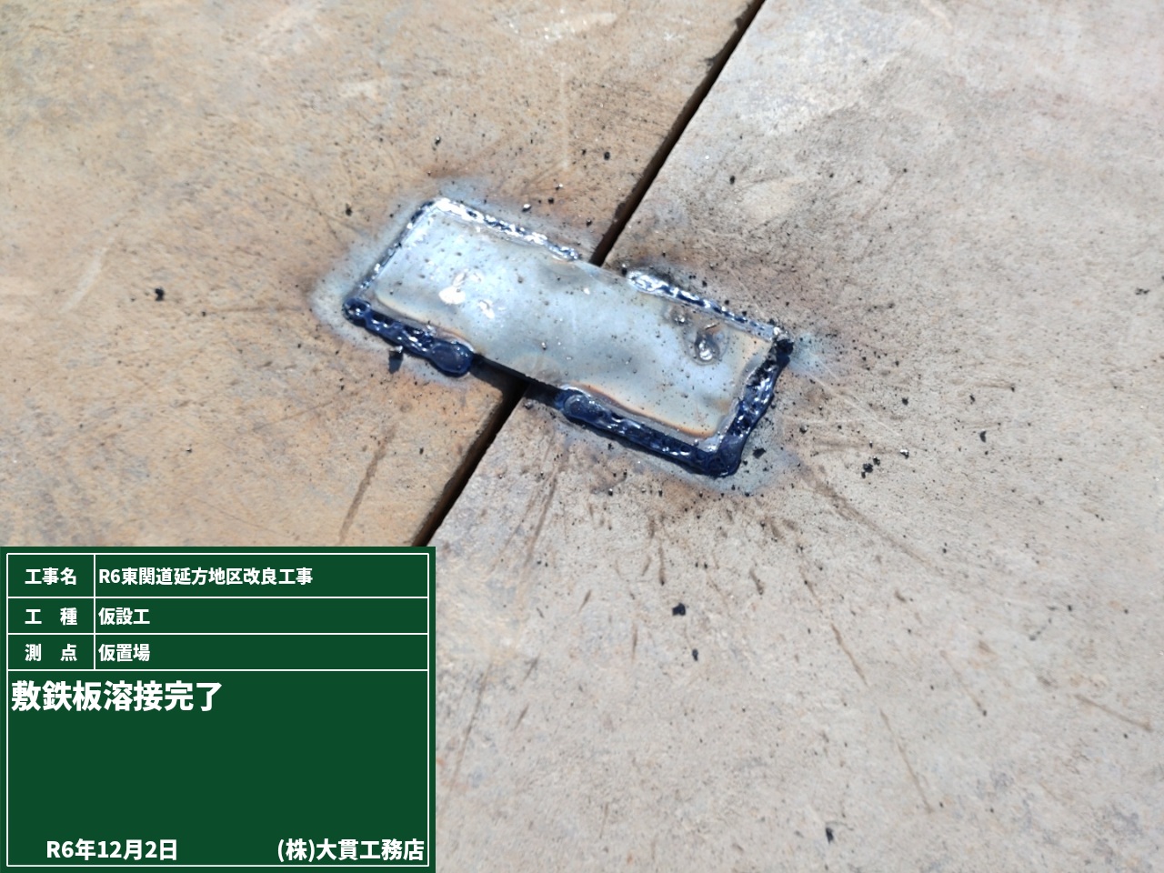 工事用車両が通るために敷く鉄板には、鉄板同士を連結させておく部品を溶接しました。