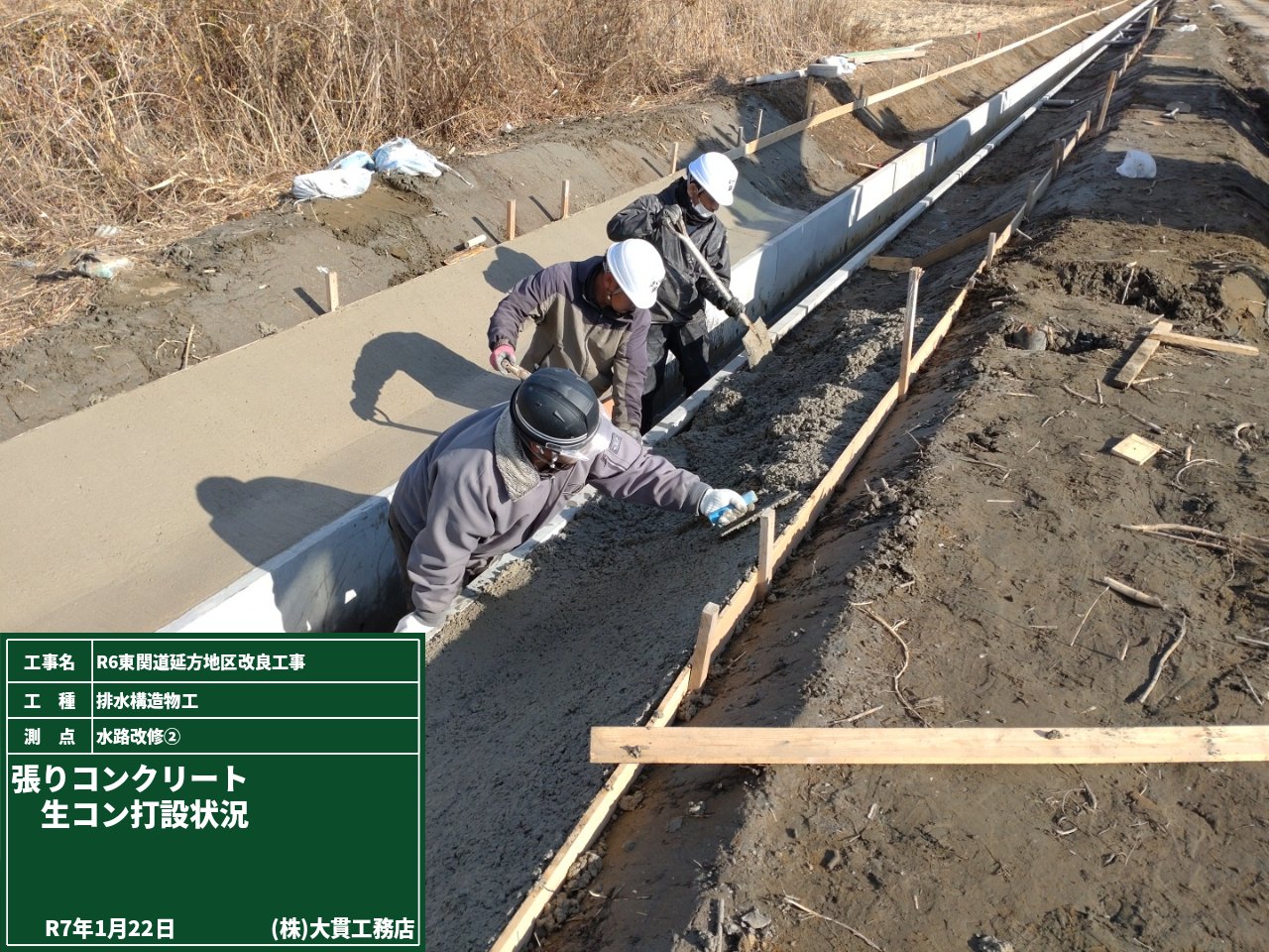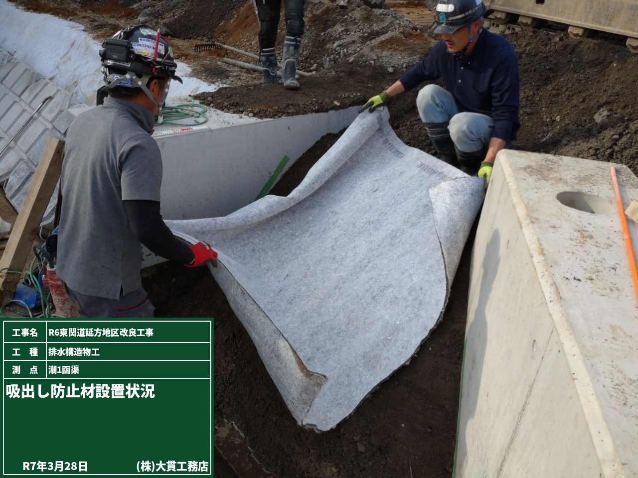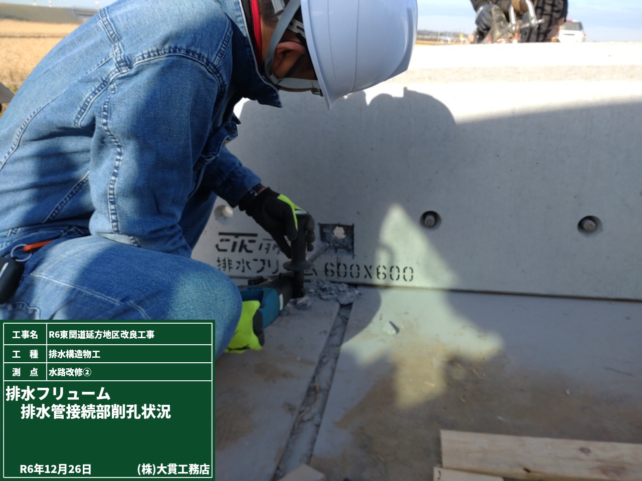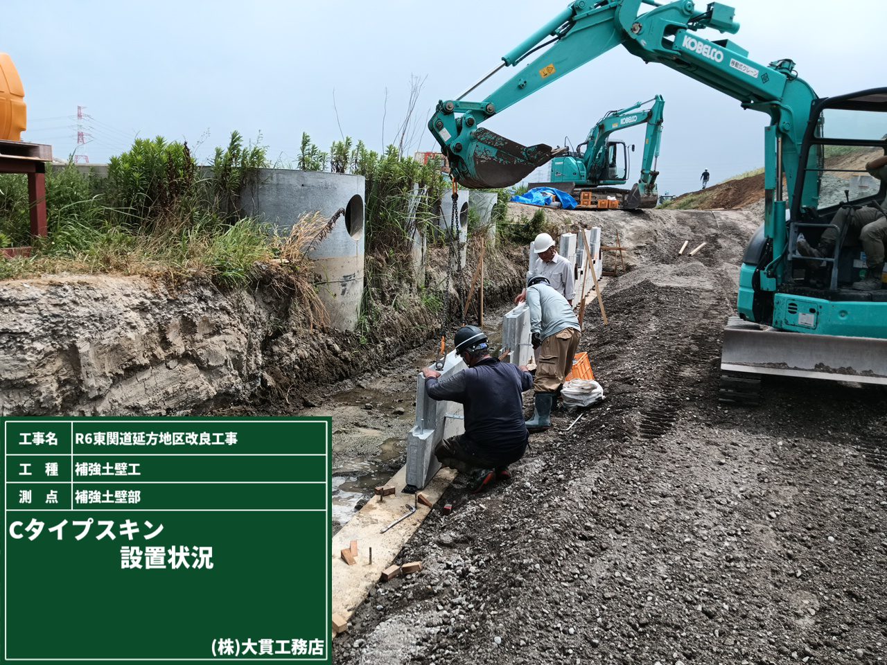 さらに補強土工壁の下では、分岐桝のコンクリート打設も終わり、スタンバイOKです!