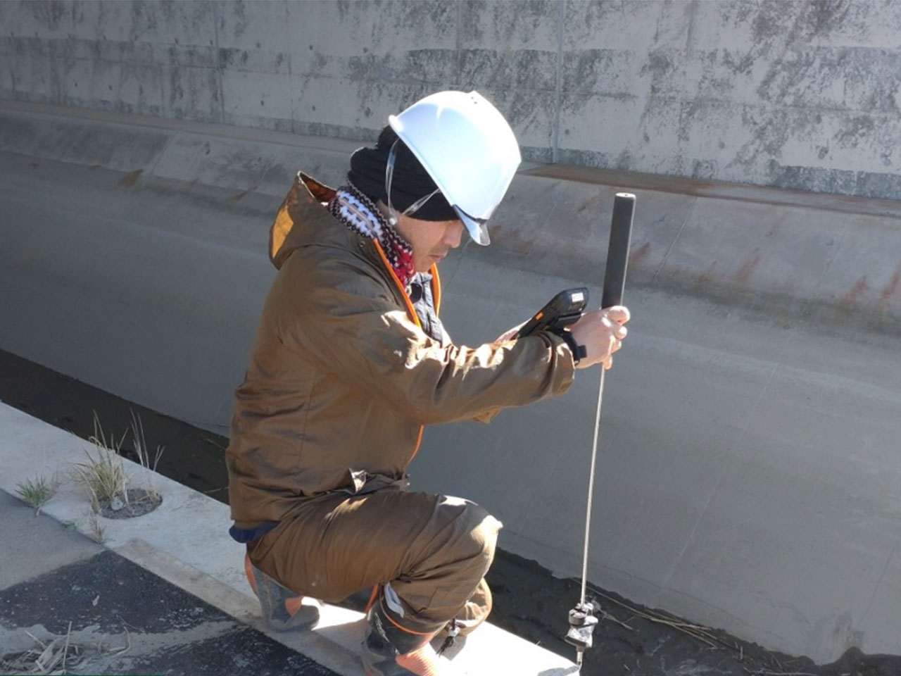 ここは見えなくなってしまう不可視部分。埋め戻す前に出来形測定をすみずみまで行います。