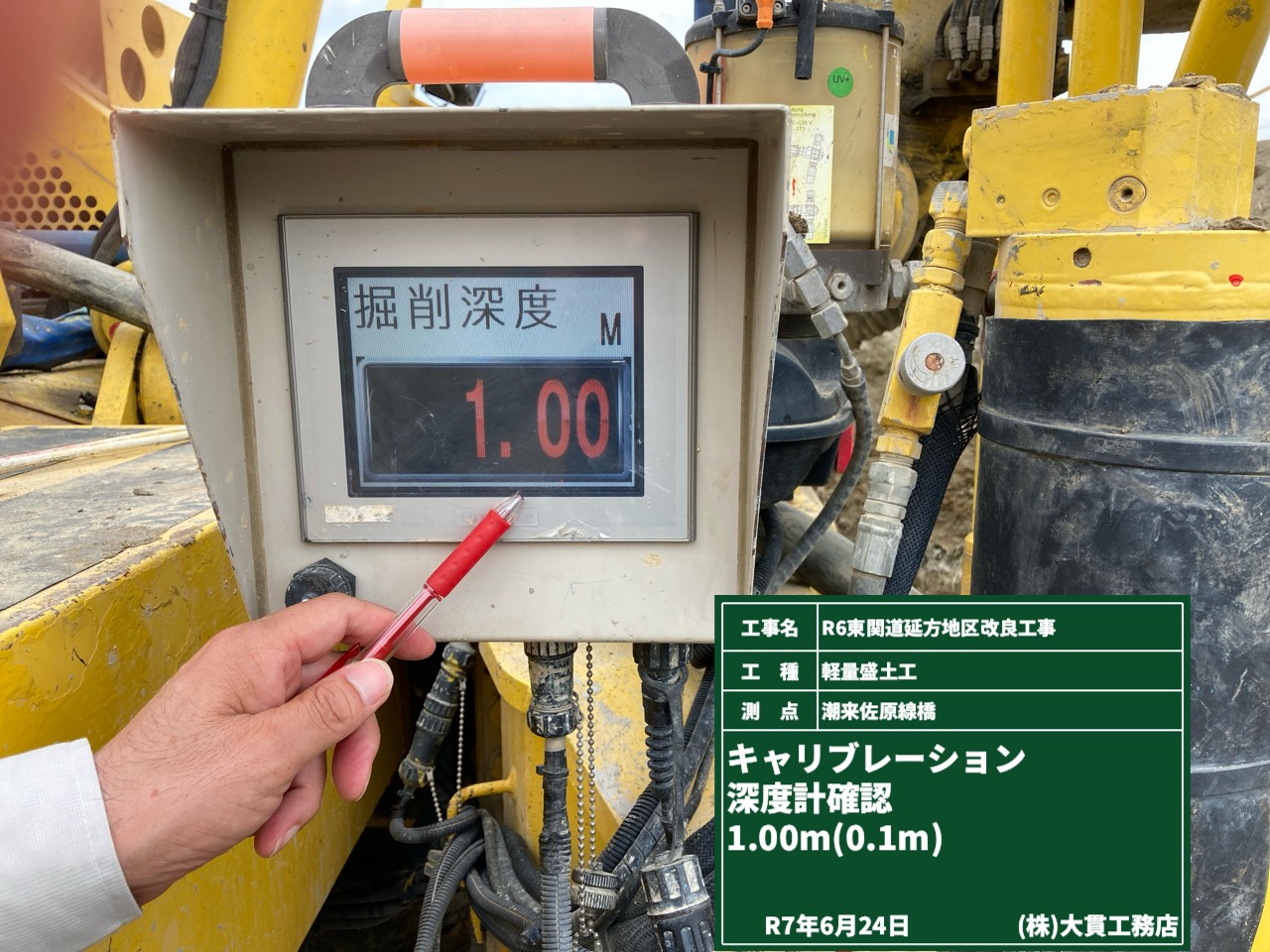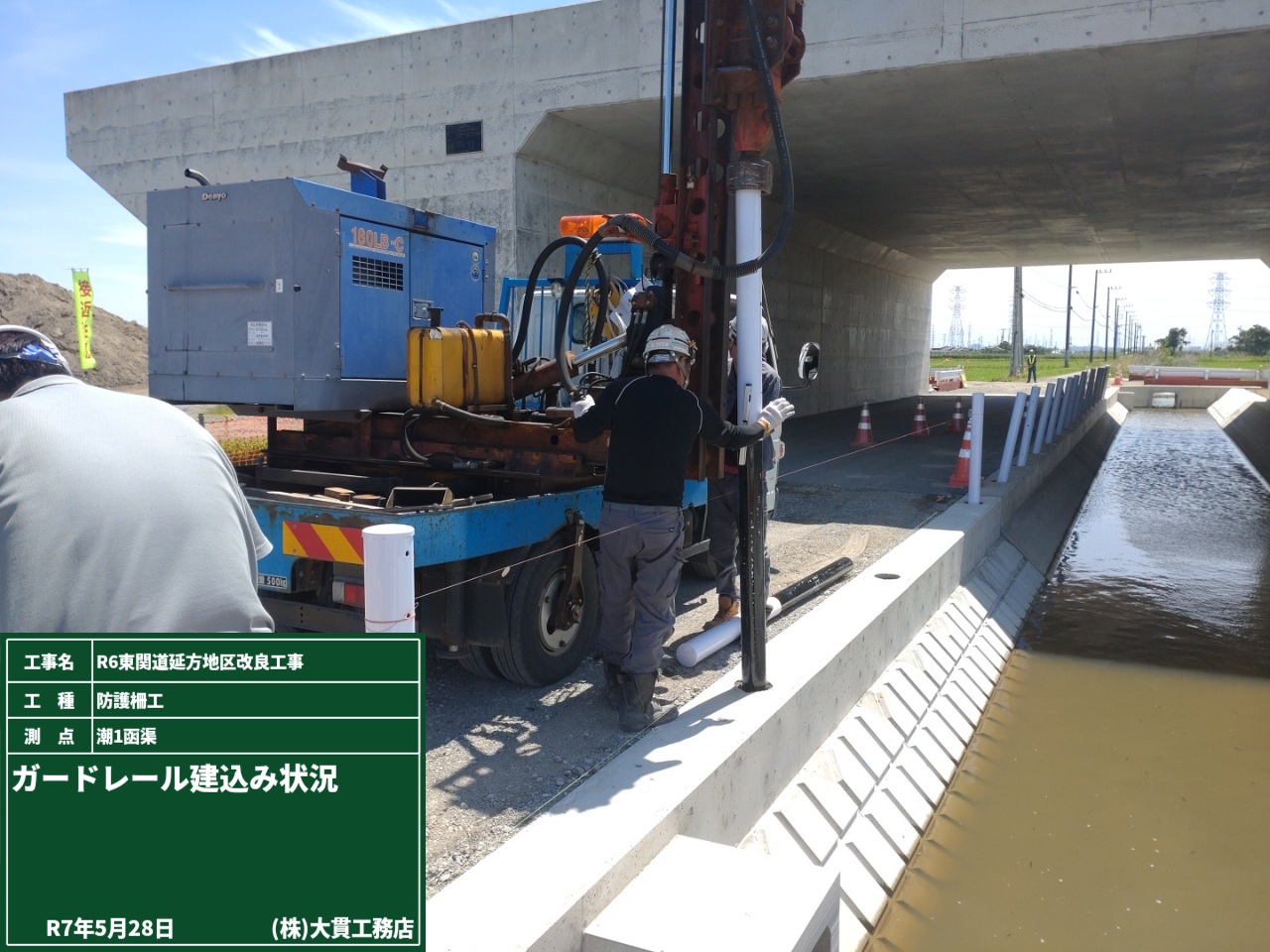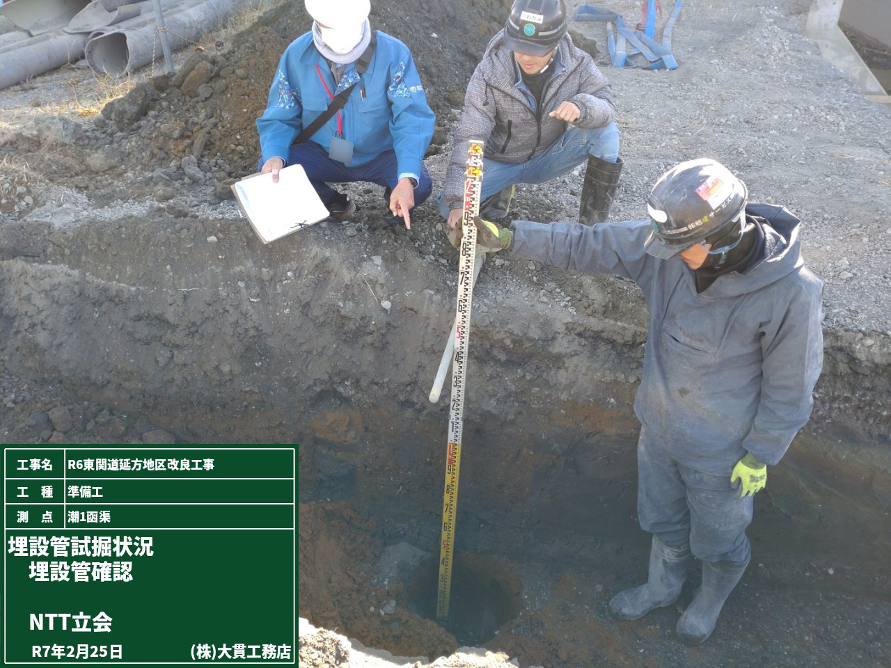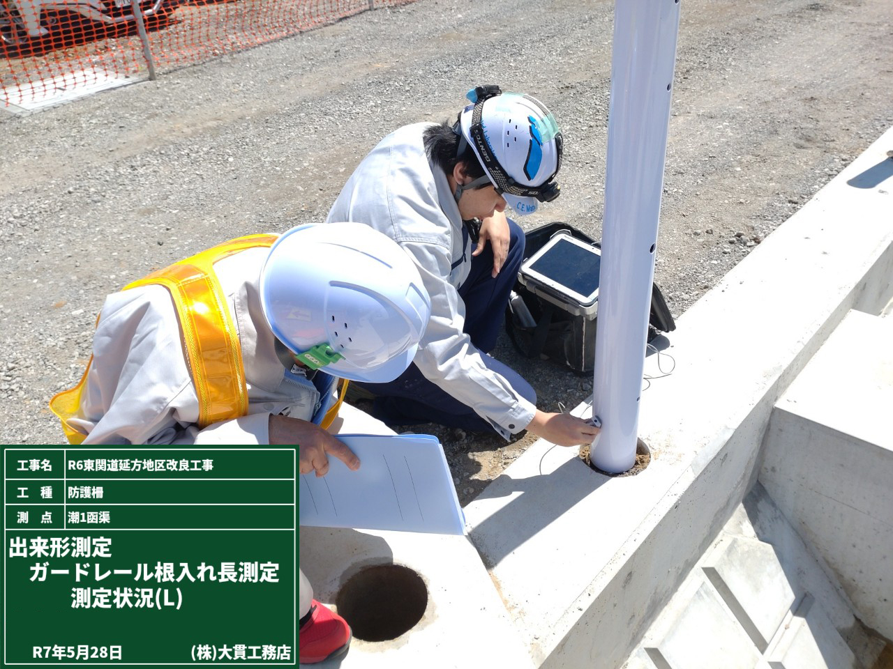 その後は発注者立会いで、ガードレールの根入れ長測定をしました。