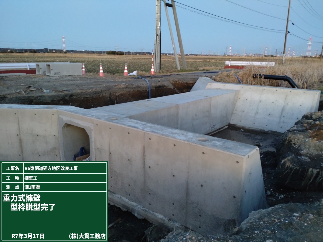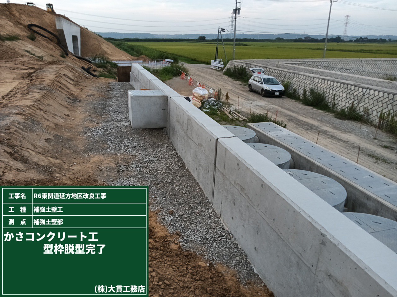 ついに、潮来佐原線橋A1橋台背面_場所打ち擁壁が完成しました!!