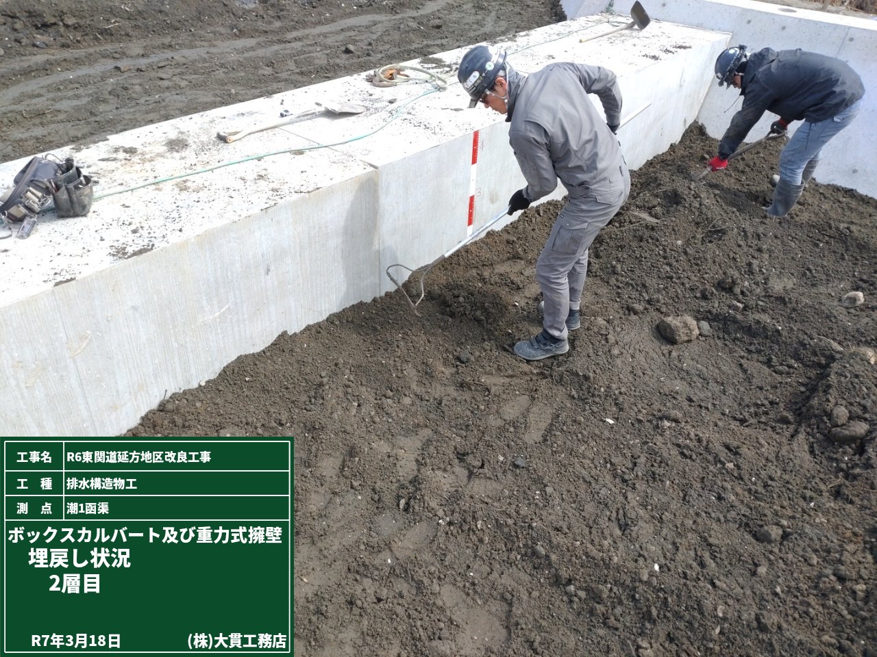 出来形測定は合格しましたので、直ぐに埋戻し作業です。