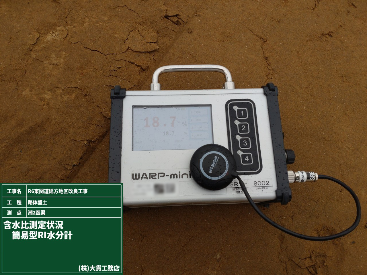 本番の施工の前に試験盛土をして、何回転圧したら土が締め固まるか(土の密度)を確認していきます。