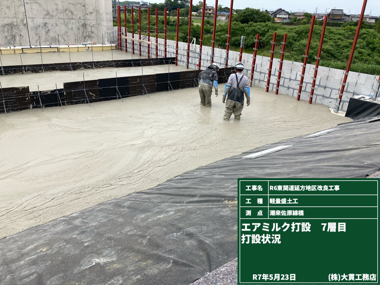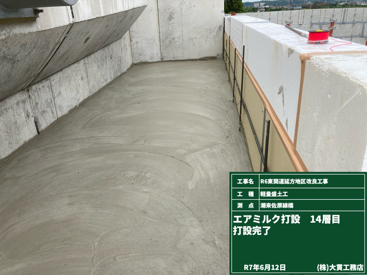 基礎コン打設が完了したら、軽量盛土工の作業が本格的にスタートです!!