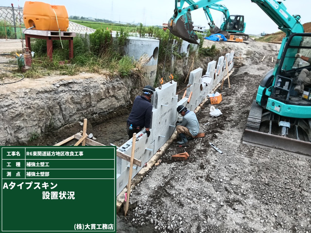補強土壁にもいくつかの種類がありますが、、今回はテールアルメ工法にて施工していきます。