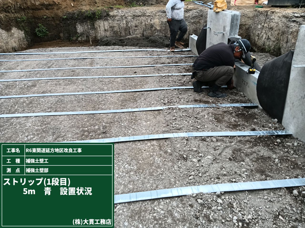 さてさて、補強土壁の作業も順調に進んでいます。