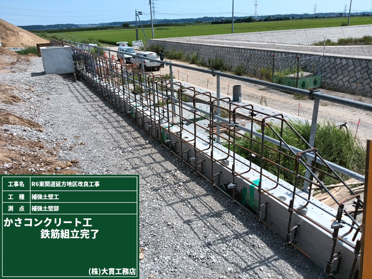 続いて、補強土壁部の笠コンクリートも無事に完成しました。