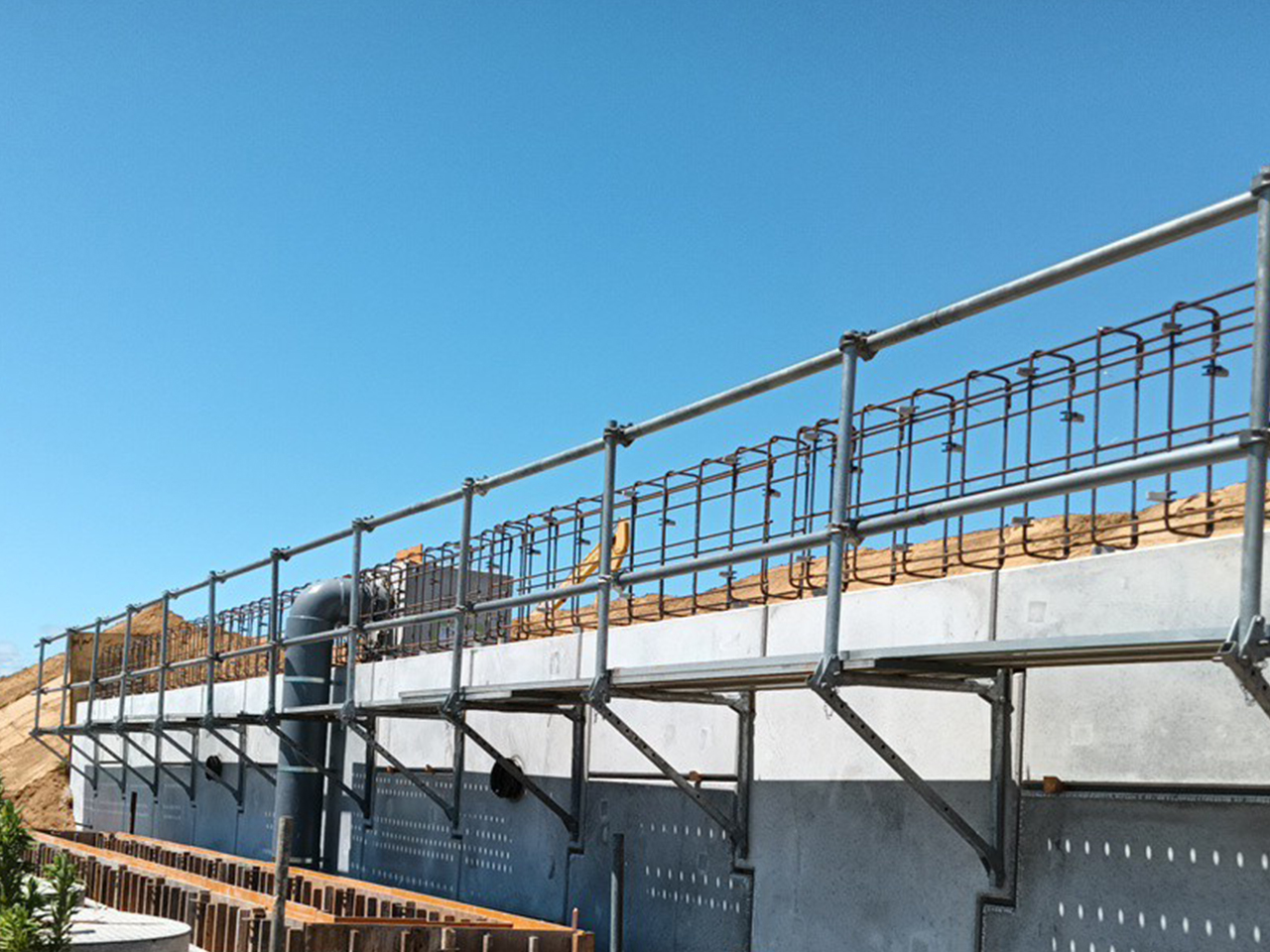 キャットウォークを使って型枠と鉄筋を組み立て、生コン打設まで完了しました!