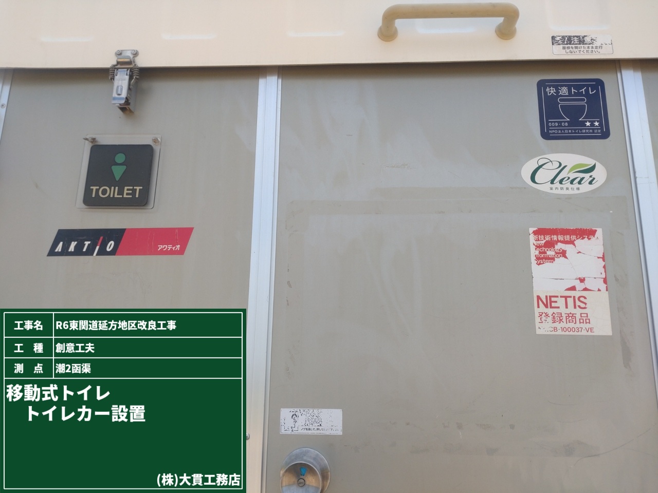 さっそくですが、現場事務所、快適トイレ、工事看板を設置しました。