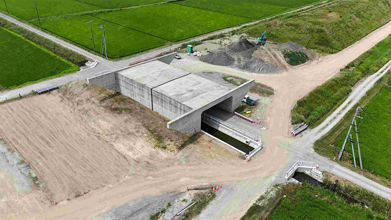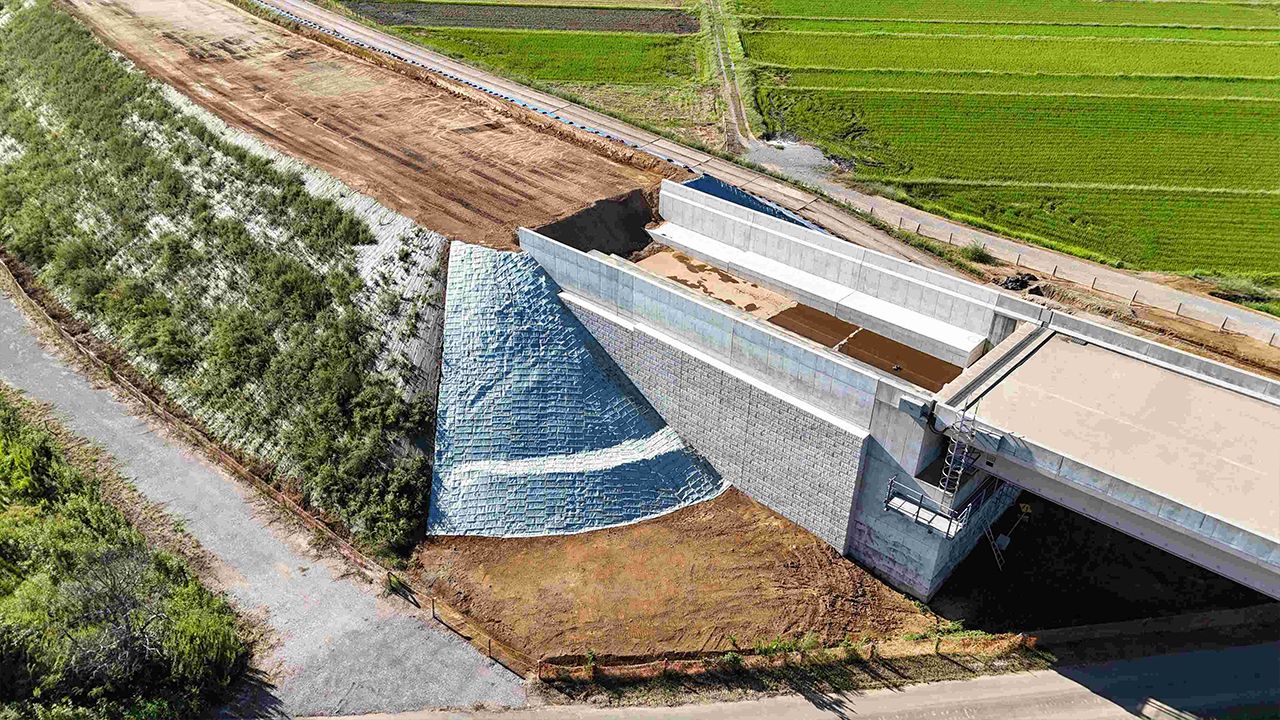 従来の重たい土の代わりに、比重の小さい材料(軽量材)を使って盛土をする工法です。