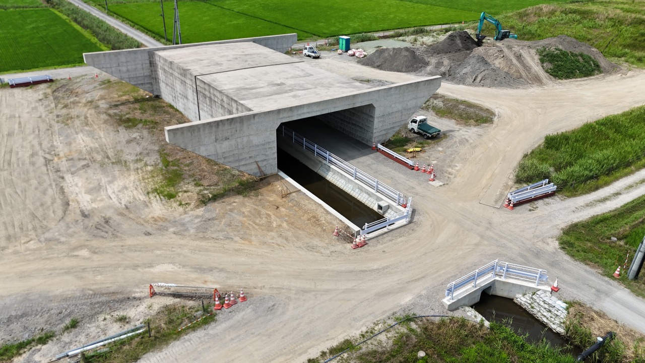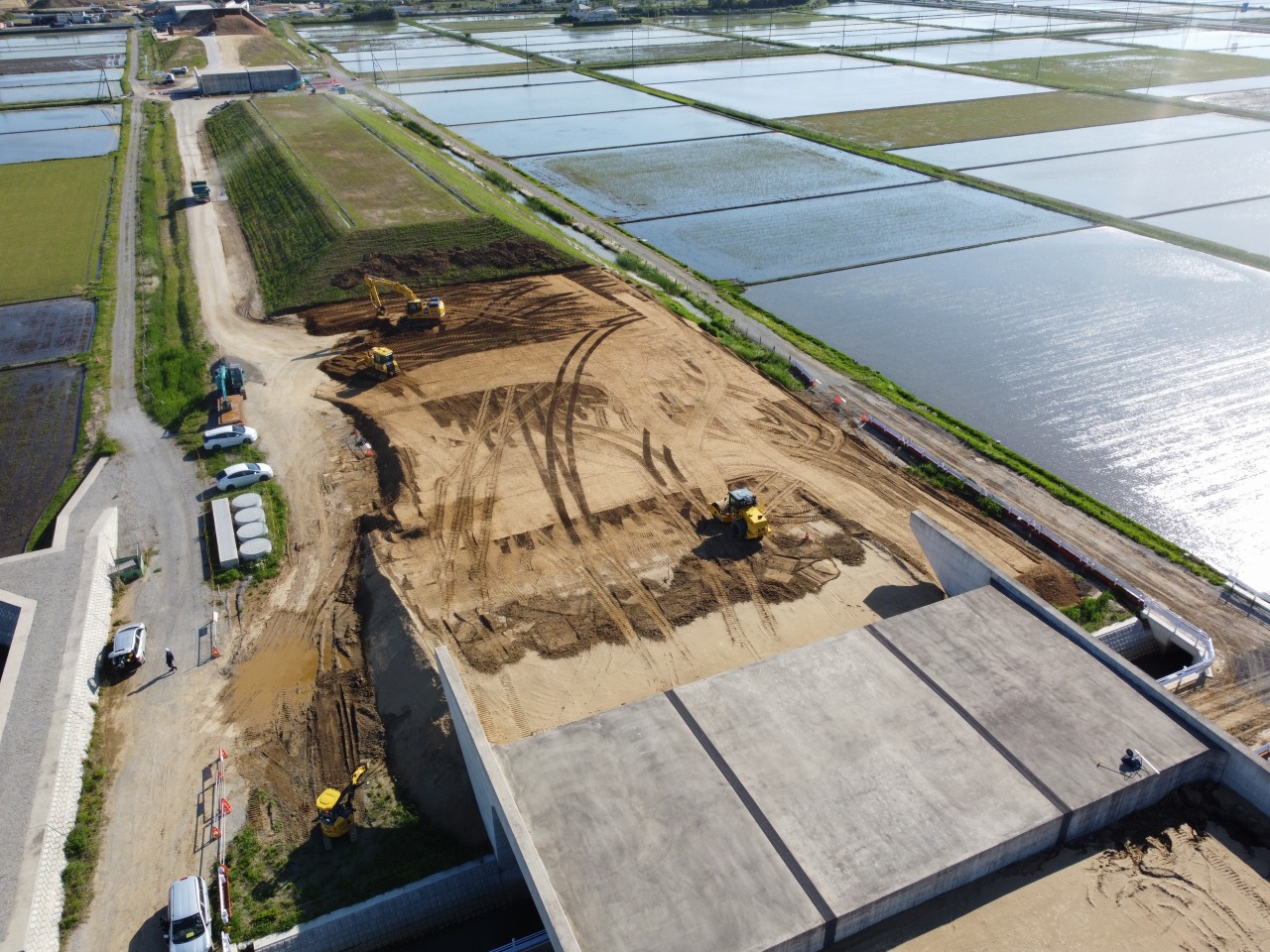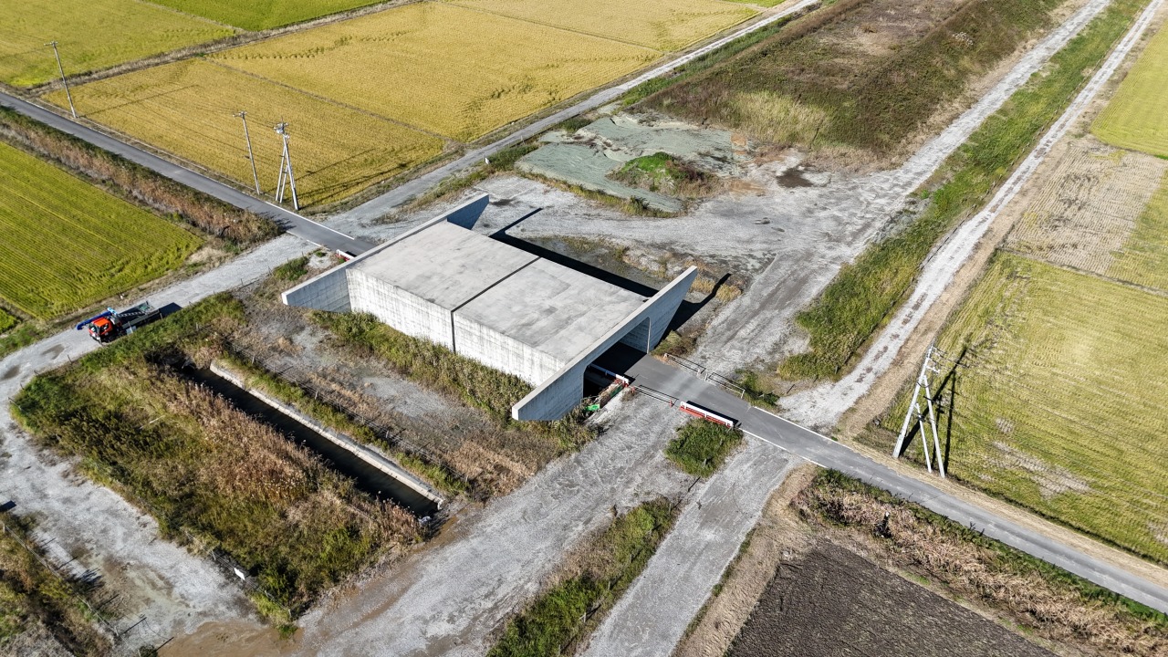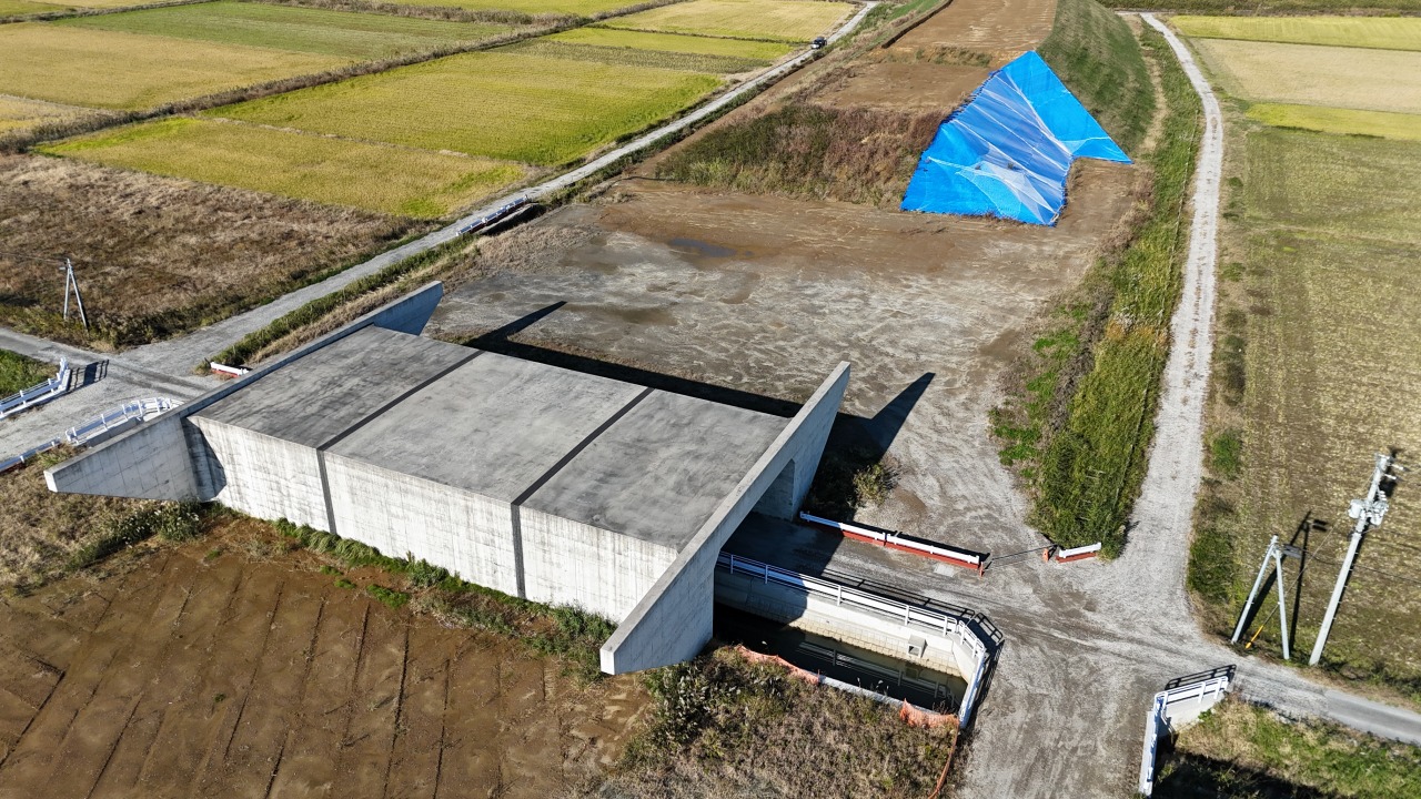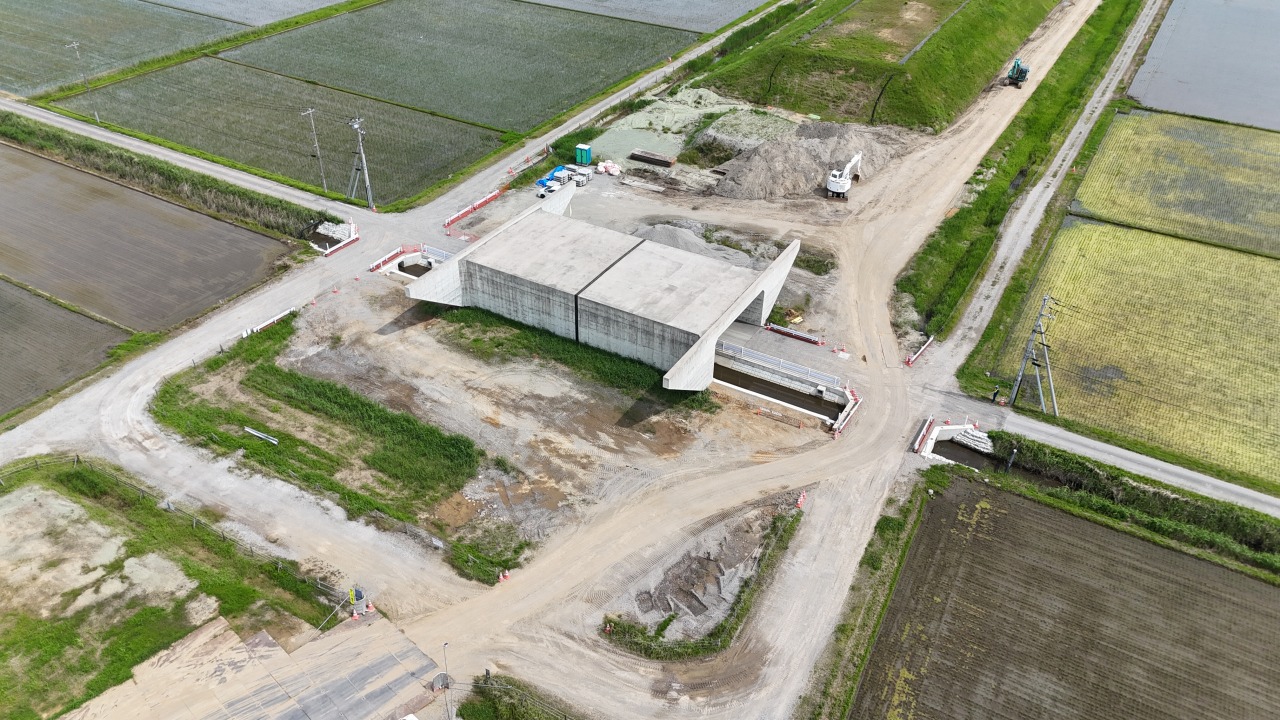 6月の現場上空の施工写真です。潮1函渠 水路1式完成しました。