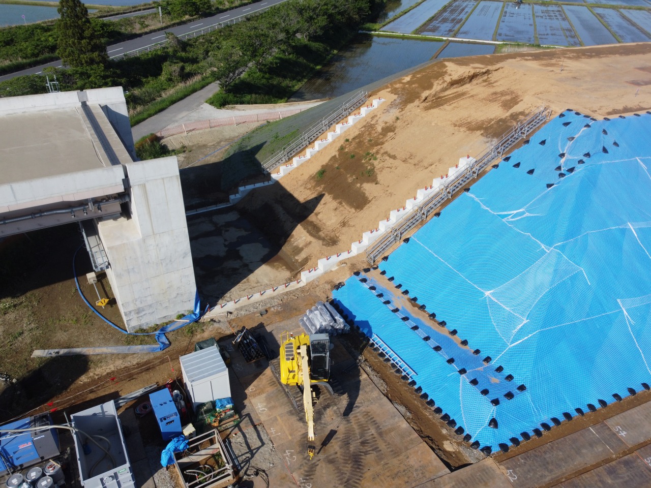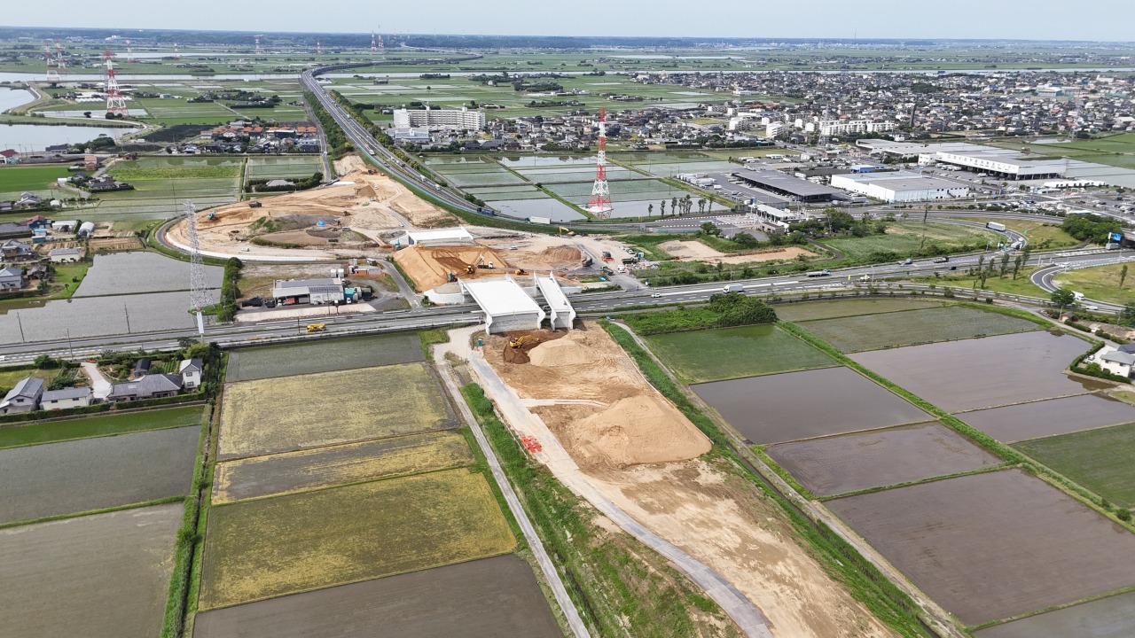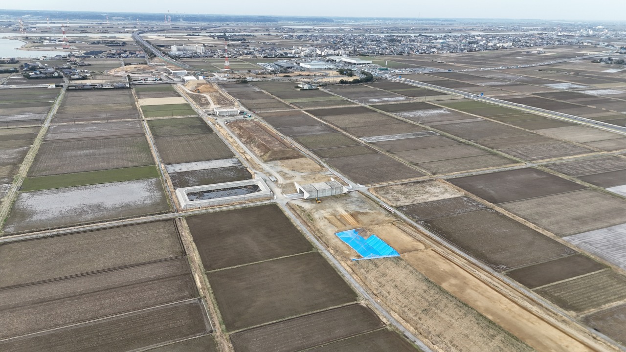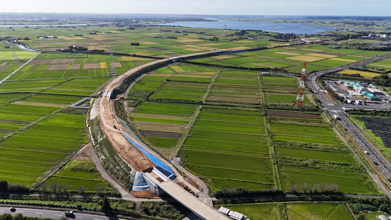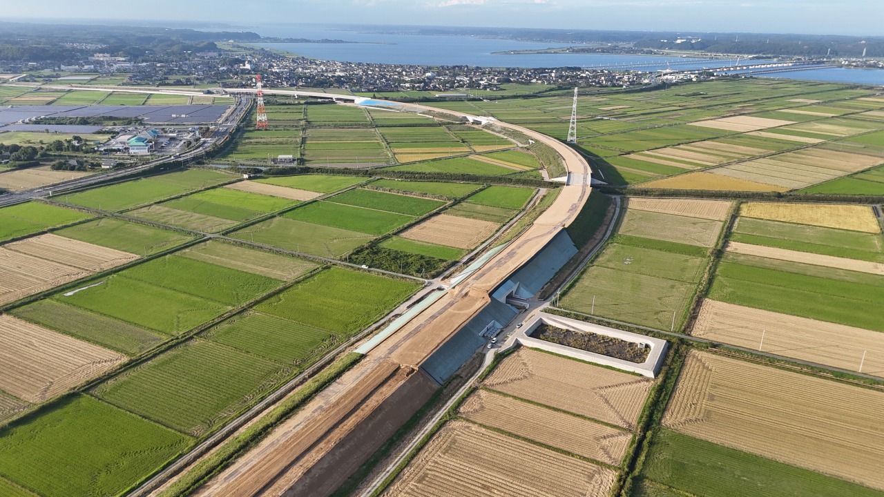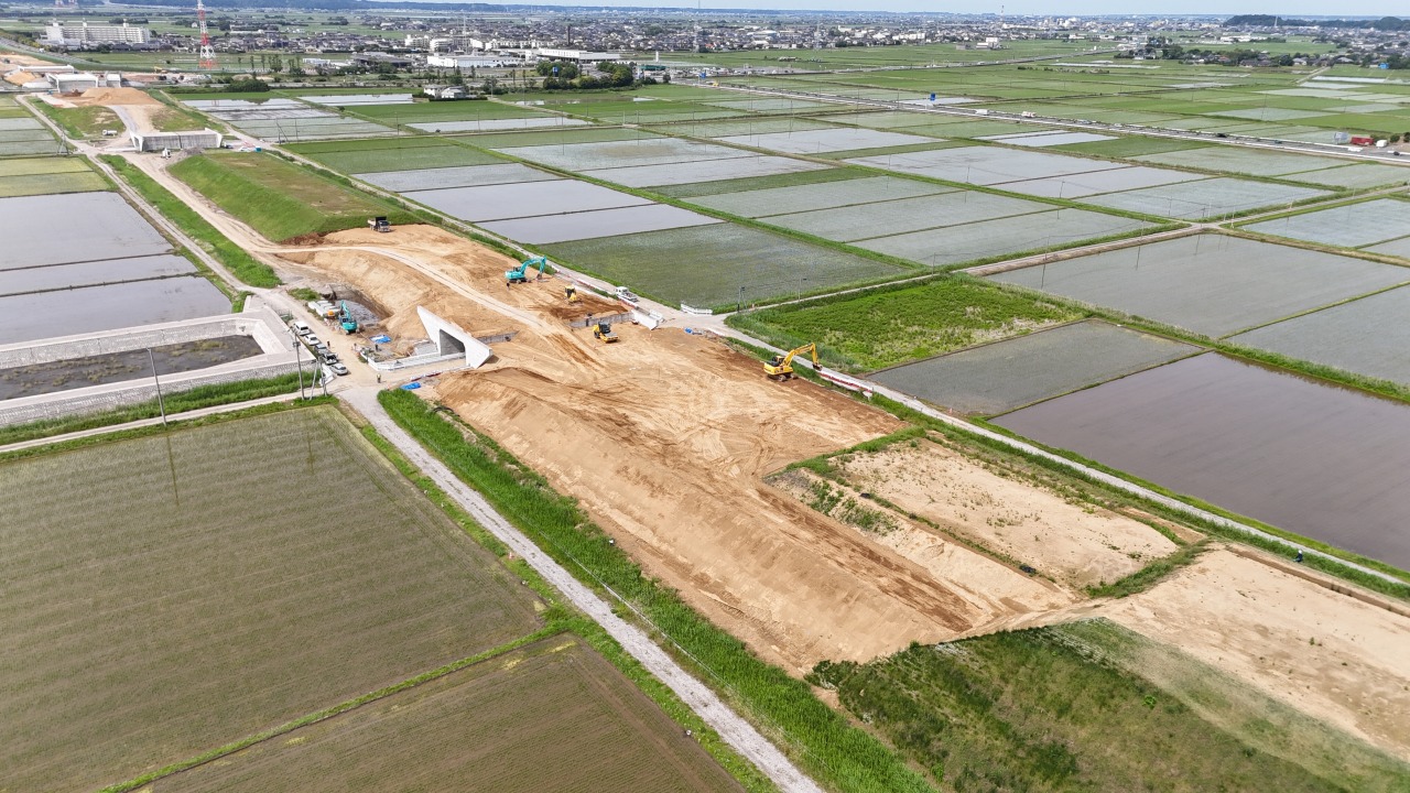 6月の現場上空の施工写真です。潮1函渠 水路1式完成しました。