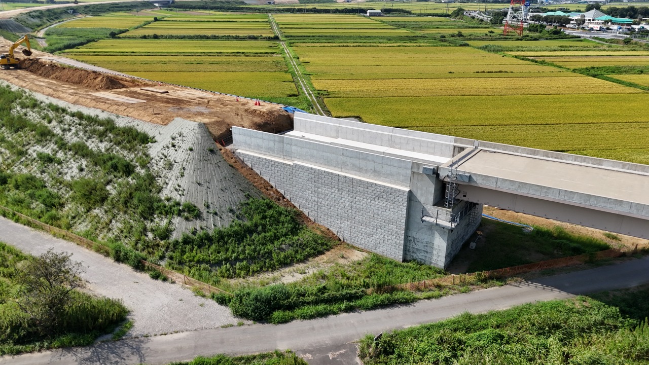 潮来佐原線橋A1橋台背面軽量盛土及び場所打ち擁壁 完成
